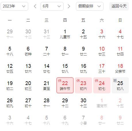 值得關(guān)注的是,五一之后下一個(gè)節(jié)假日就是端午節(jié),網(wǎng)友發(fā)現(xiàn),端午節(jié)和五一同樣需要調(diào)休:今年端午節(jié)是6月22日,22日-24日放假,25日(周日)上班。也就是說,法定放假一天,但打亂了正常雙休,25日(周日)調(diào)休一天,假期后再連續(xù)上班6天。